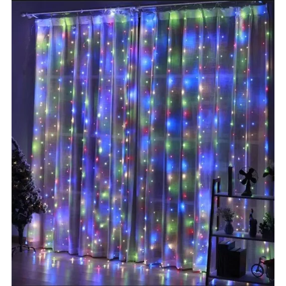 Instalație Tip Perdea LED 3x3m Multicolor – Telecomandă, 300 LED-uri